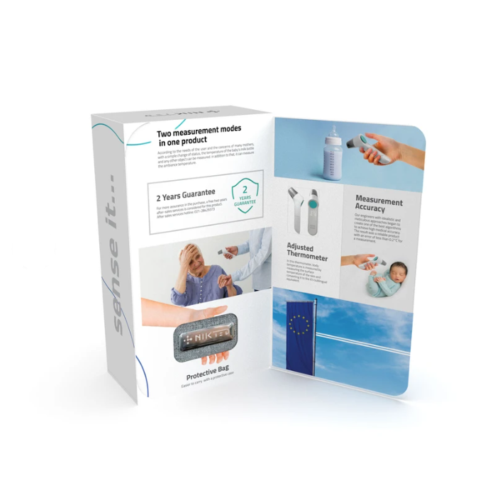 تب سنج دیجیتال آریو محصولی از برند (NIKTED) با همکاری شرکت پویندگان راه سعادت است که با ابعاد جمع و جور و با طراحی ارگونومیک به بازار عرضه شده است که می تواند جایگزین و رقیب نمونه های مشابه خارجی باشد. تب سنج آریو با تکنولوژی مادون قرمز این امکان را فراهم کرده که دمای بدن را از فاصله اندازه گیری کنید که این ایده علاوه بر کم کردن دردسرهای دماسنجی، قطعا برای دنیای پر ویروس ما هم مفید خواهد بود. دقت اندازه گیری این محصول 0/2 سانتی گراد است که در کمتر از 2 ثانیه از فاصله 1 تا 5 سانتی متری پیشانی، دمای بدن را نشان می دهد. منبع تغذیه این دستگاه 2 عدد باتری نیم قلمی (AAA) است.